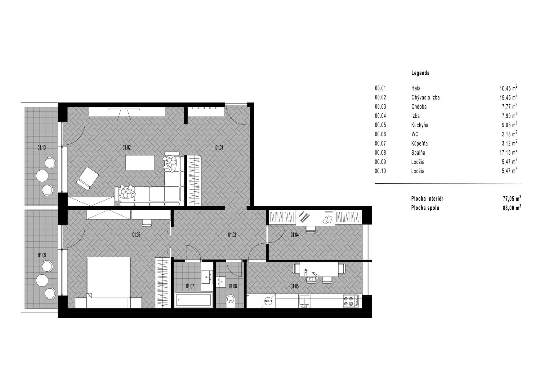 • Celková plocha: 77,05